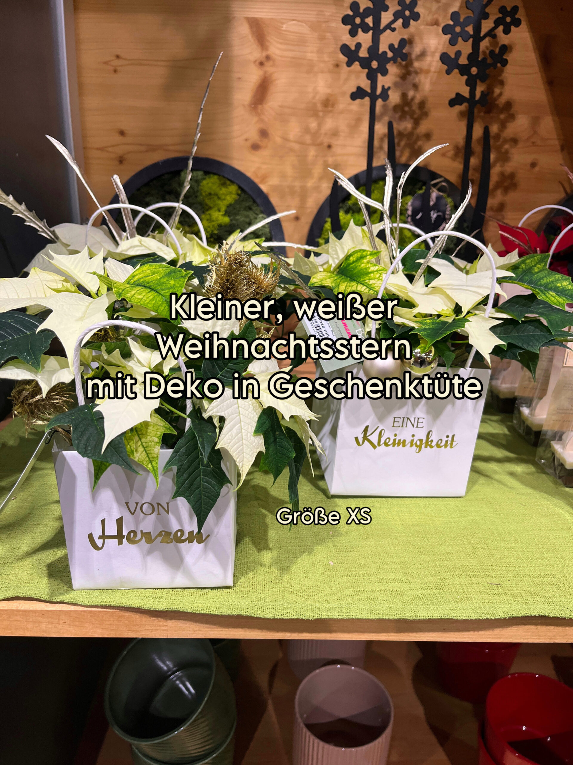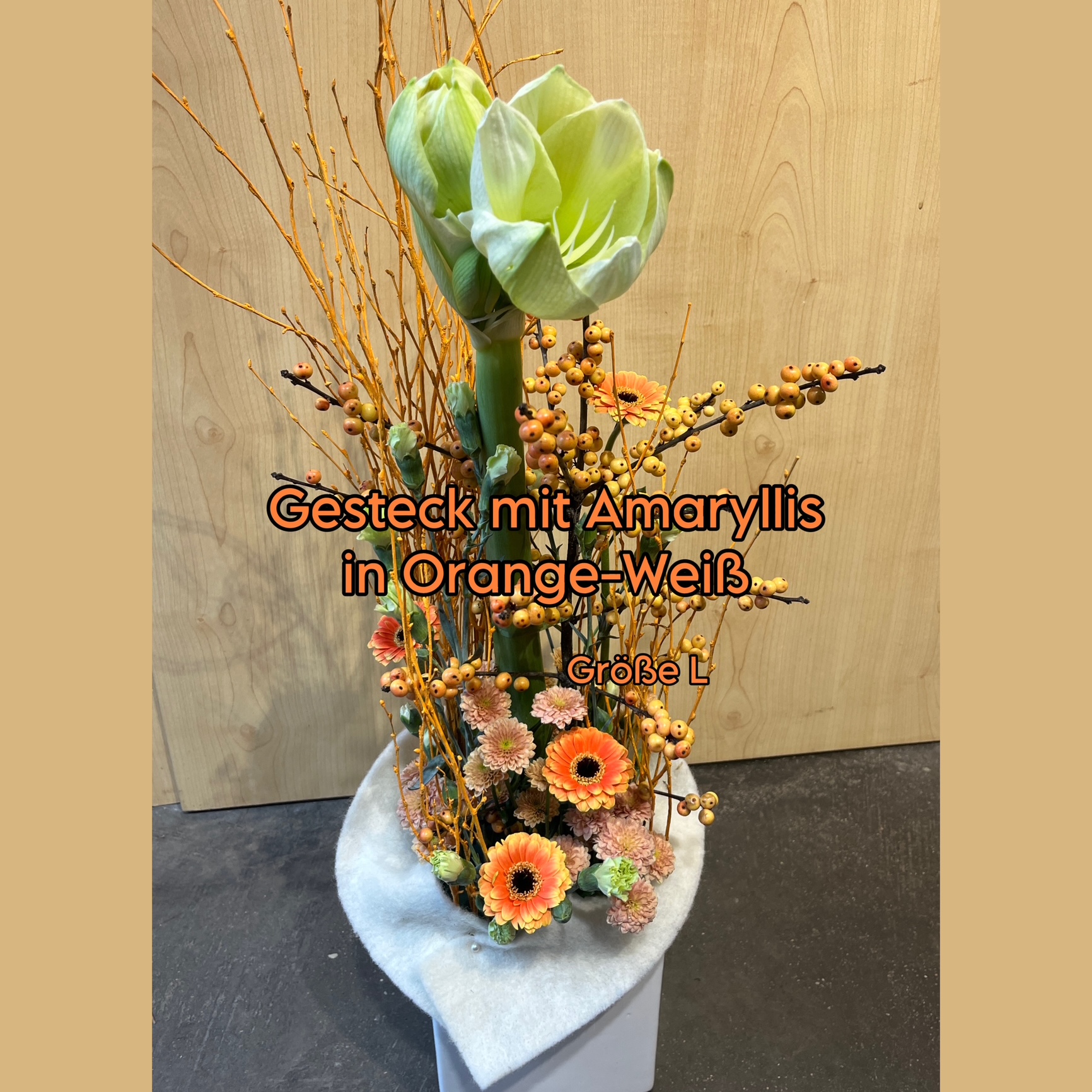Auf den Beispielbildern finden Sie die Preisangabe von XS bis XL zu dem abgebildeten Arrangement.